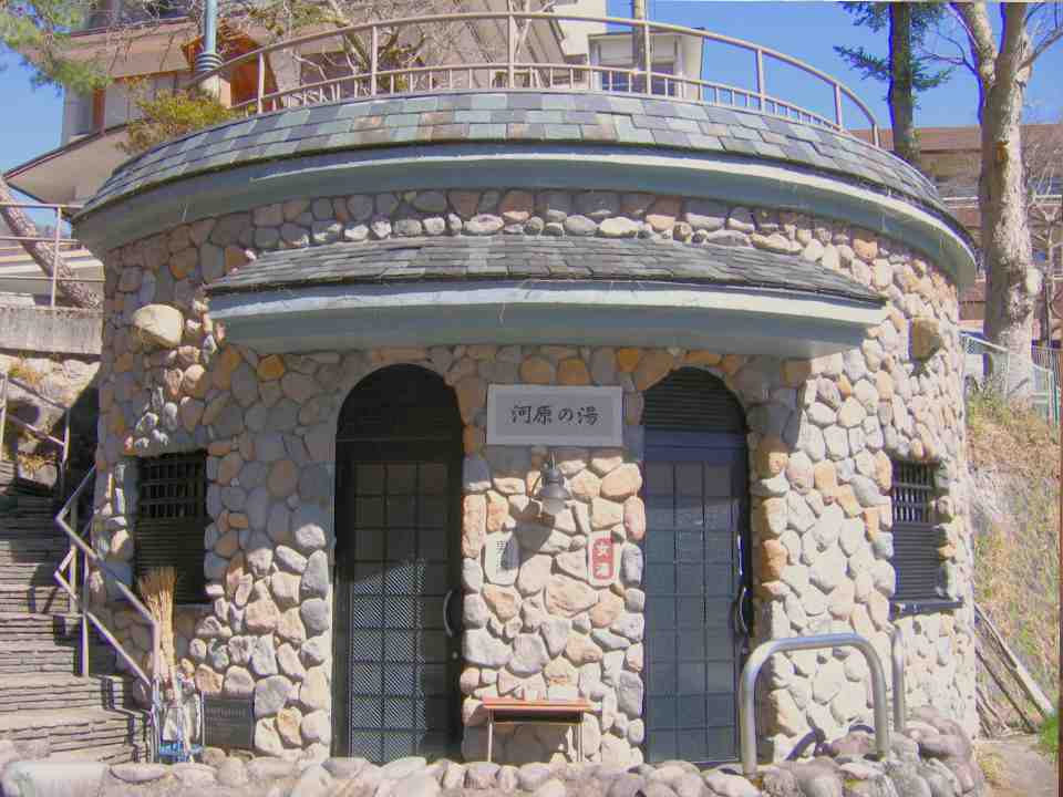 ♨ Japanese word "kawara" means "riverside" or "riverbed".