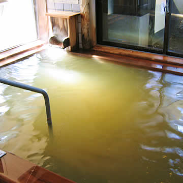 The spring water that comes up from 1,500 m (4,921 ft) underground is about 45 ℃ (113 ℉), just the right temperature. It's pleasant that the greenish-yellow cloudy water and a scent of trees reminiscent of the forest.