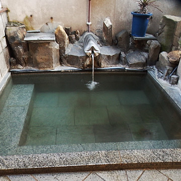 The temperature of the open-air bath is just right. Although it is old, it has a lot of facilities for a communal bath, such as a waterfal shower.