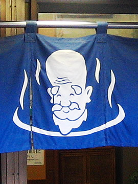 The Fukurokuju statue welcomes them. They go through the entrance at once. At an undressing room.
