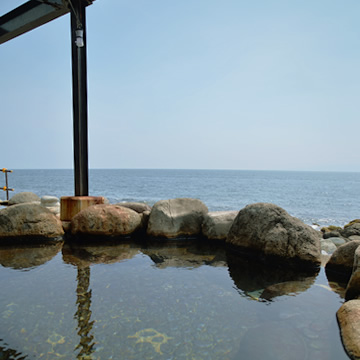 An open-air bath on the shore. The height of the line of sight is not much different from the sea level, so it feels like you are immersed in the ocean. Hot spring fans rave about it, and it is ranked in the Nikkei newspaper's "10 Best Hot Springs in Nature".