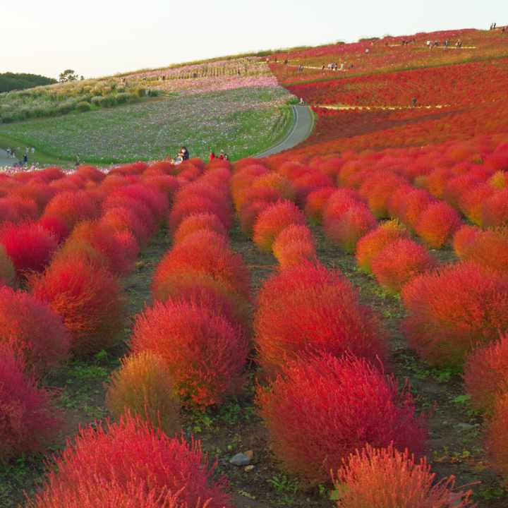 ♨ 国営ひたち海浜公園のコキアの紅葉が見ごろになるのは、10月中旬頃です。