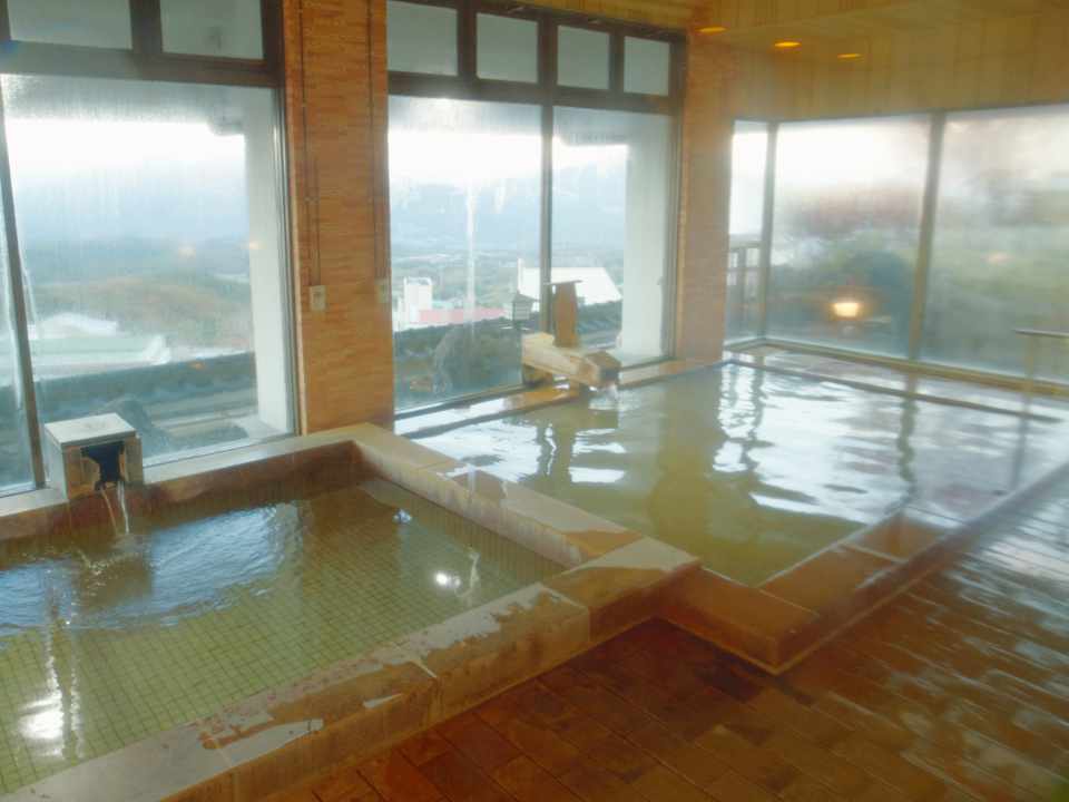 最上階にある「展望大浴場」からは、谷川岳や三国連山を望む大パノラマが広がる。 湯船には伊香保温泉らしい「黄金の湯」(こがねのゆ)が源泉かけ流し。(古久家は黄金の湯を源泉から直接引くことのできる9軒の旅館のうちのひとつ)