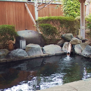 Dark reddish brown hot water has a lot of iron. Hot water is poured from the spout of the cute statue of Jizo-san, and you can relax both physically and mentally.
