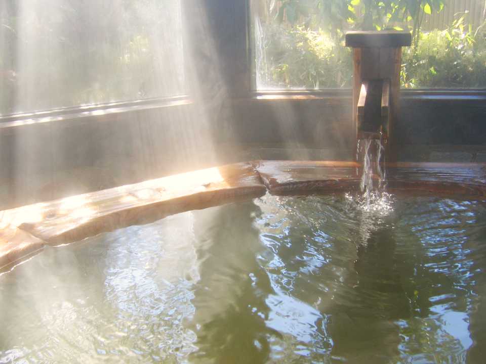 The spring water that comes up from 1,500 m (4,921 ft) underground is about 45 ℃ (113 ℉), just the right temperature. It's pleasant that the greenish-yellow cloudy water and a scent of trees reminiscent of the forest.