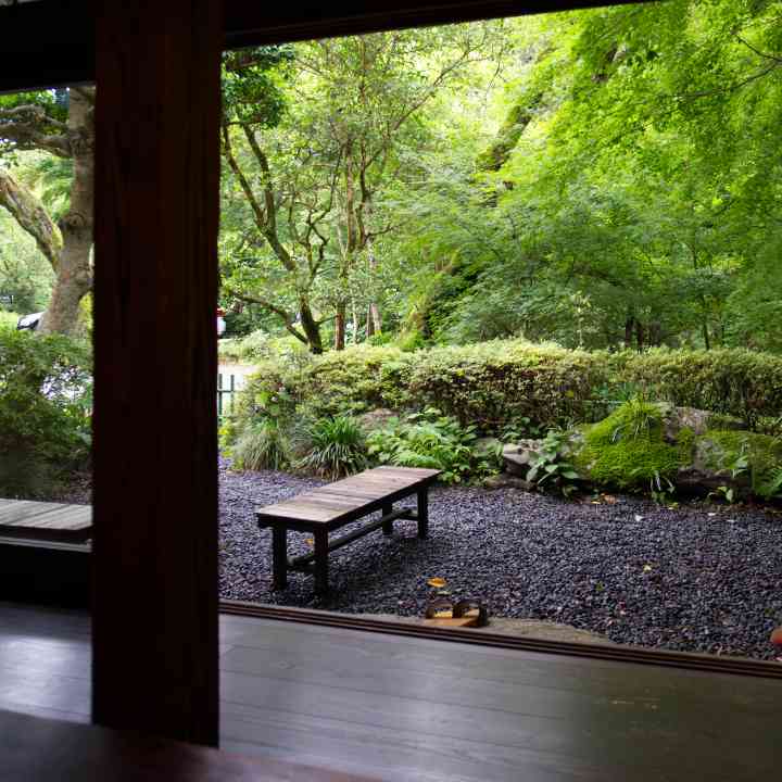 西さんと北さん、庭を眺めながら、休憩スペースでしばしくつろぎました。 遠くから聞こえる、梅雨明けを待ちきれないセミの声が、七沢の森に流れる時間をゆったり進めているようです。
