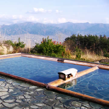 眼下に広がる甲府盆地とその周りの山々、雄大な富士山を眺めながら入る露天風呂の至福